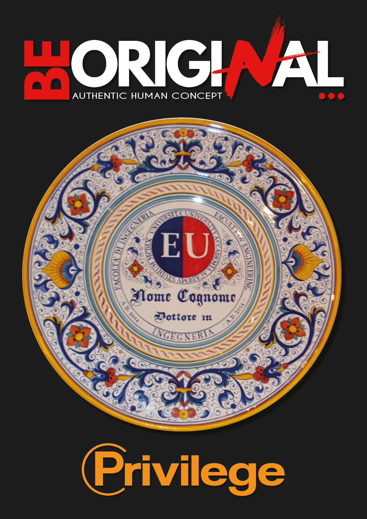 PRIVILEGE è l’icona unica, esclusiva e personalizzata al mondo realizzata per testimoniare e riaffermare il raggiungimento dei importanti obiettivi e quindi del Tuo valore. PRIVILEGE ha un design unico e, nella sua sobria impattante estetica, diviene elemento catalizzatore d’interesse. E’ la prima vera trasposizione artistica del Tuo valore e dei momenti più importanti della Tua vita. Laurea, master, matrimoni, eventi e momenti indimenticabili.
